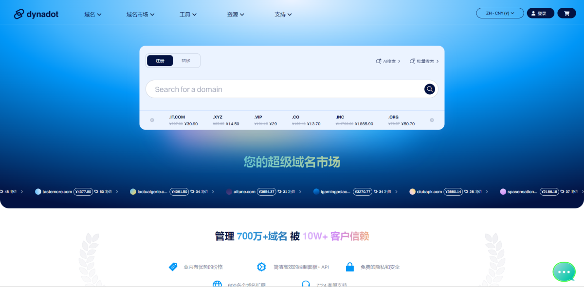 为庆祝 Dynadot 域名管理量突破 900 万,我们特别推出了 69 元的 .COM 转移优惠,使用优惠码 DYNA9M,即可享受此优惠!当然了,域名转移包含一年的续费成本。