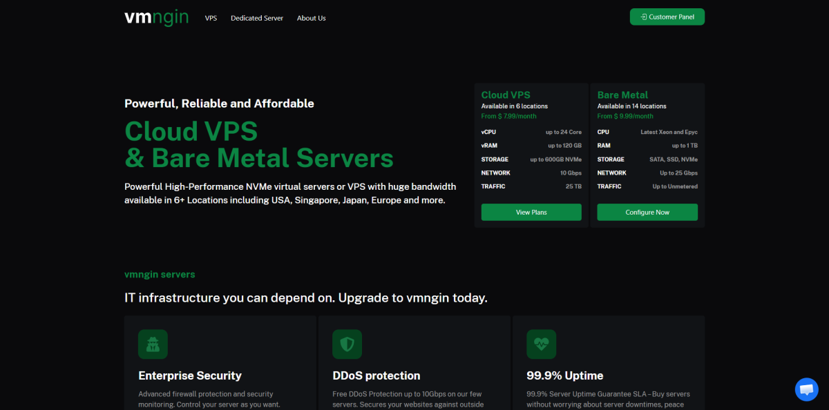 VMngin是一家2025年成立的印度公司,主要运作着全球50个数据中心的VPS和独立服务器业务。其中VPS低至€23.99/年起,默认10Gbps/共享、不限制流量、自带一个IPv4,底层为KVM虚拟,硬盘为NVMe SSD raid10阵列。付款方式支持借记卡、信用卡、多种加密货币、PayPal。