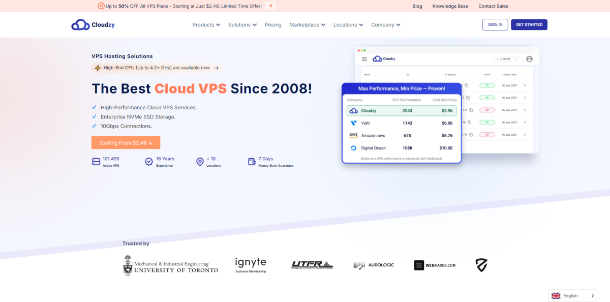 Cloudzy商家成立于2008年,曾用名RouterHosting,2025年一月的时候收购了BuyVM,商家提供云服务器(VPS)、独立服务器等产品,以Cloud VPS为例,可选择Regular CPU、High Frequency CPU、Premium GPU系列。