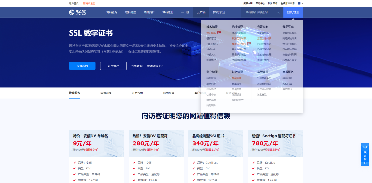 1、SSL证书安信 DV单域名:原价29元/年,首单特惠价:9元/年文章源自主机信息-https://www.zhujixinxi.cn/402.html