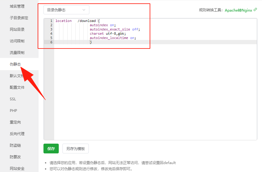 第二步,打开我们要开启目录浏览功能的网站设置,在后台的 网站-->选择网站-->设置-->伪静态文章源自主机信息-https://www.zhujixinxi.cn/61.html